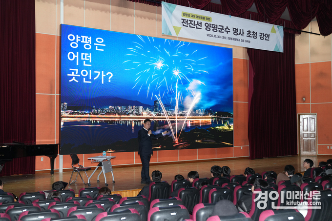 (경인미래신문=민경호 기자) 양평군(군수 전진선)은 지난 30일 양평고등학교 대극장에서 3학년 학생 120여 명을 대상으로 ‘꿈을 향한 준비, 밝은 내일의 시작’을 주제로 명사 특강을 진행했다고 밝혔다.