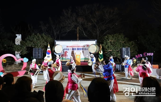 어둠을 깨우는 풍물 공연과 대북 공연이 행사 시작을 알린 후, 구민들의 안녕과 행복을 기원하는 소망 기원 퍼포먼스가 이어졌다.