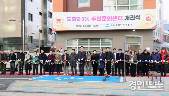 (경인미래신문=민경호 기자) 인천 미추홀구(구청장 이영훈)는 지난 5일 주민들의 문화 향유 기회 확대와 지역 공동체의 활성화를 위한 도화2·3동 주민문화센터 개관식을 개최했다고 밝혔다.