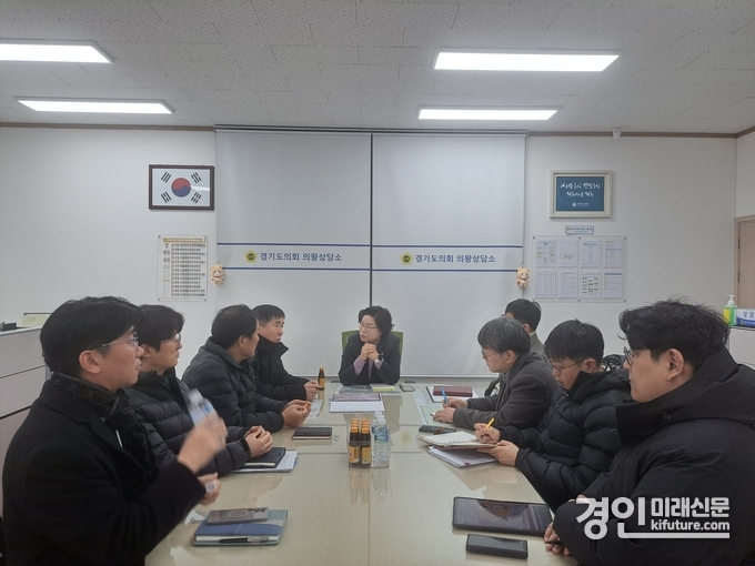 (경인미래신문=민경호 기자) 경기도의회 도시환경위원회 김옥순 의원(더불어민주당, 비례)은 16일 경기도의회 의왕상담소에서 의왕시청 도시정책과장과 관계 공무원 및 주민들과 함께 ‘재개발 사업 공사 진행 관련 문제점 대책 마련을 위한 정담회’를 개최했다.