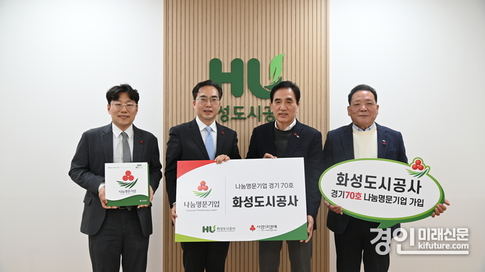 (경인미래신문=민경호 기자) 화성도시공사(사장 한병홍, 이하 HU공사)가 사랑의열매 고액 기부 기업 모임인 ‘나눔명문기업’ 경기 70호로 이름을 올렸다.