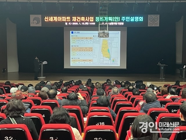 (경인미래신문=민경호 기자) 인천시 남동구는 최근 구청 대강당에서 구월동 신세계아파트 재건축사업의 정비계획 수립 및 정비구역 지정(안)에 대한 주민설명회를 개최했다고 19일 전했다.