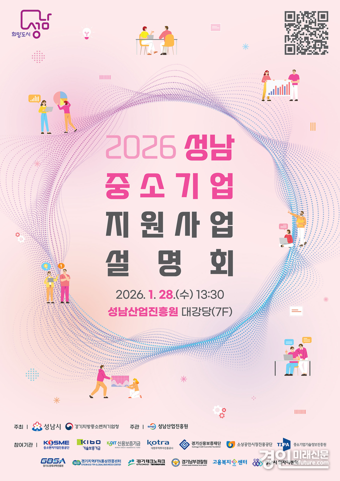 (경인미래신문=민경호 기자) 성남시(시장 신상진)는 성남산업진흥원과 함께 오는 1월 28일 성남산업진흥원 대강당(정자동 킨스타워 7층)에서 ‘2026 성남 중소기업 지원사업 설명회’를 개최한다.
