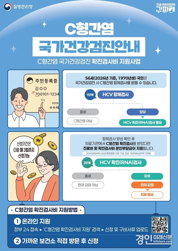지난해 시작한 ‘C형간염 확진검사비 지원사업’은 기존 병·의원급 의료기관의 검사 대상자로 한정됐으나 올해부터는 종합병원과 상급종합병원에서 확진 검사를 받은 대상자까지 확대된다.
