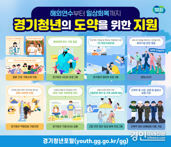 경기도 청년정책 관련 자세한 내용은 경기청년포털 누리집(youth.gg.go.kr) 또는 경기도청 누리집(gg.go.kr)에서 확인할 수 있다.