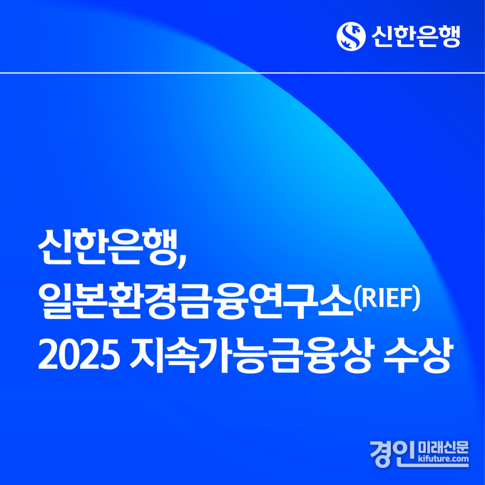 (경인미래신문=민경호 기자) 신한은행(은행장 정상혁)은 지난 23일 일본환경금융연구소(Research Institute for Environmental Finance, RIEF)가 주관하는 ‘2025 지속가능금융상(Sustainable Finance Awards)’에서 글로벌 부문 수상기관으로 선정됐다.