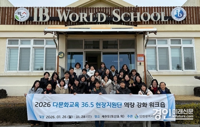(경인미래신문=민경호 기자) 인천광역시교육청(교육감 도성훈)은 급변하는 다문화 사회에 대응하고 학교 현장의 다문화교육 전문성을 강화하기 위해 26일부터 28일까지 제주도 일대에서 ‘다문화교육 36.5 현장지원단’ 몰입형 연수를 실시했다.