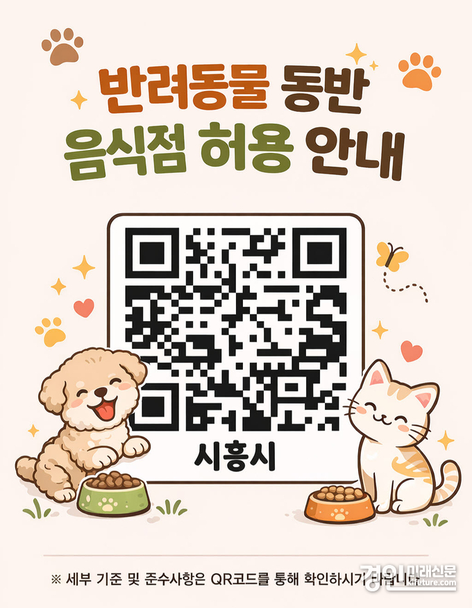 (경인미래신문=민경호 기자) 시흥시는 식품위생법 시행규칙 개정에 따라 오는 3월 1일부터 반려동물과 함께 출입할 수 있는 음식점 제도가 새롭게 시행된다고 밝혔다.