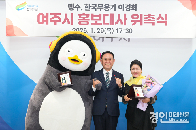 이충우 여주시장은 “어린이를 넘어 세대가 모두 공감하는 캐릭터로 성장한 펭수와 전통문화예술을 세계화로 이끈 이경화 명무님을 홍보대사로 모실 수 있어서 매우 뜻깊게 생각한다”면서 “문화 관광 도시로 새로운 도약에 나선 여주시의 홍보대사로서 큰 역할들을 기대한다”고 말했다.