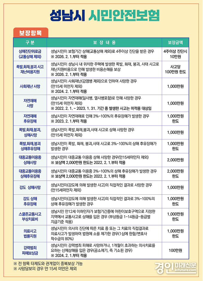 이번 보장 확대에 따라 시민안전보험 보장항목은 기존 12개에서 14개로 늘어났다.