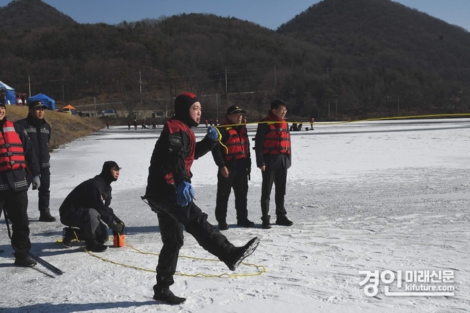 이번 훈련은 겨울철 저수지와 하천에서 발생할 수 있는 각종 수난사고에 대비해 현장 대응 능력을 높이기 위해 마련됐다.
