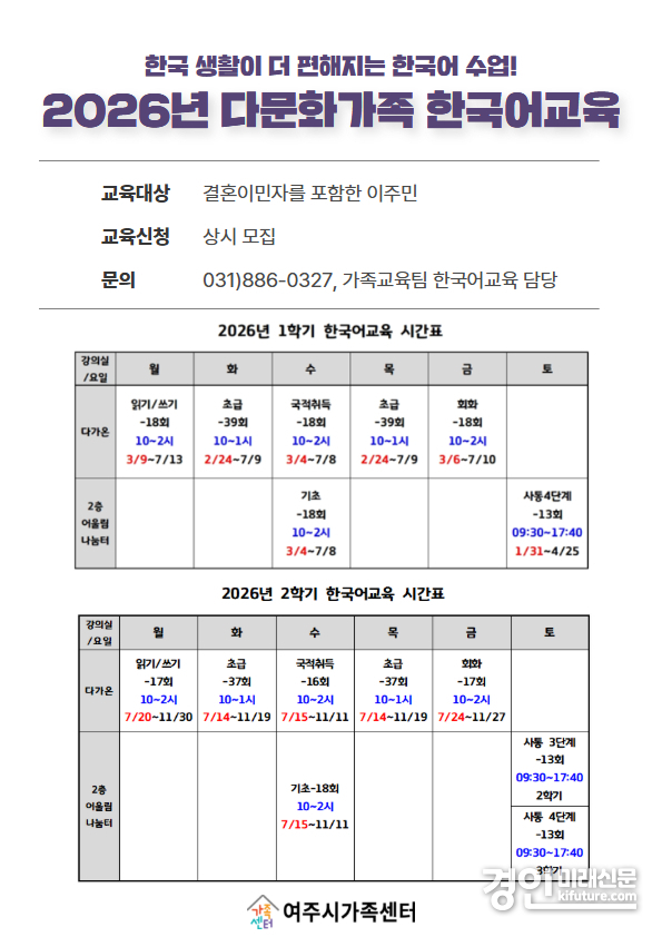 기타 자세한 내용은 여주시가족센터 한국어교육 담당자에게 문의하면 된다.