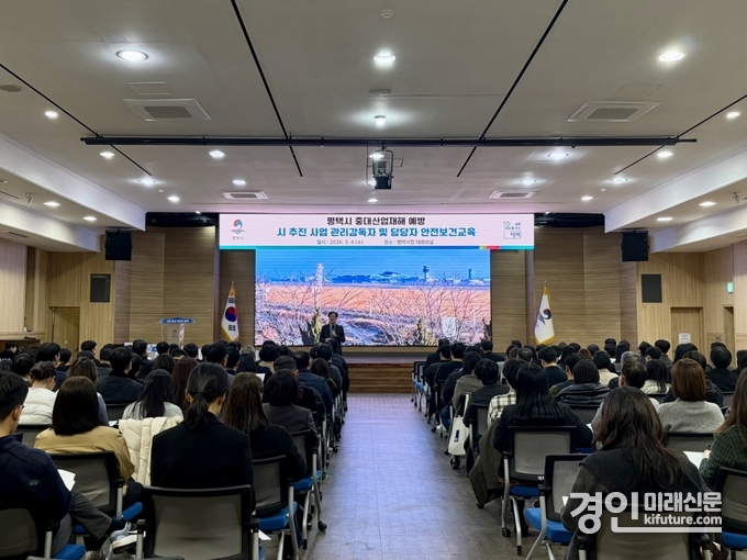 (경인미래신문=민경호 기자) 평택시(시장 정장선)는 지난 4일 시청 대회의실에서 시 소속 사업장 및 도급사업의 안전관리 수준을 높이고 중대산업재해 예방을 위해 ‘중대산업재해 예방 역량 강화를 위한 안전·보건 교육’을 실시했다.