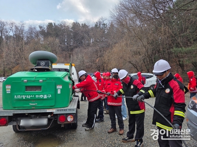(경인미래신문=민경호 기자) 인천 미추홀구(구청장 이영훈)는 산림 재난 대응 역량 강화를 위해 연수구, 남동구, 중구와 함께 ‘4개 구 합동 산림 재난 대응단 교육 및 훈련’을 진행했다고 10일 밝혔다.