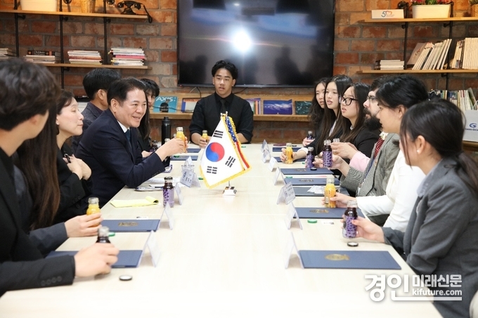 가든그로브시 학생들은 16일 오전 신성고를 방문해 수업에 참여하고 오후 2시부터 안양시청 3층에서 열린 간담회에 참석해 한국 문화와 지역사회에 대한 경험을 공유했다.