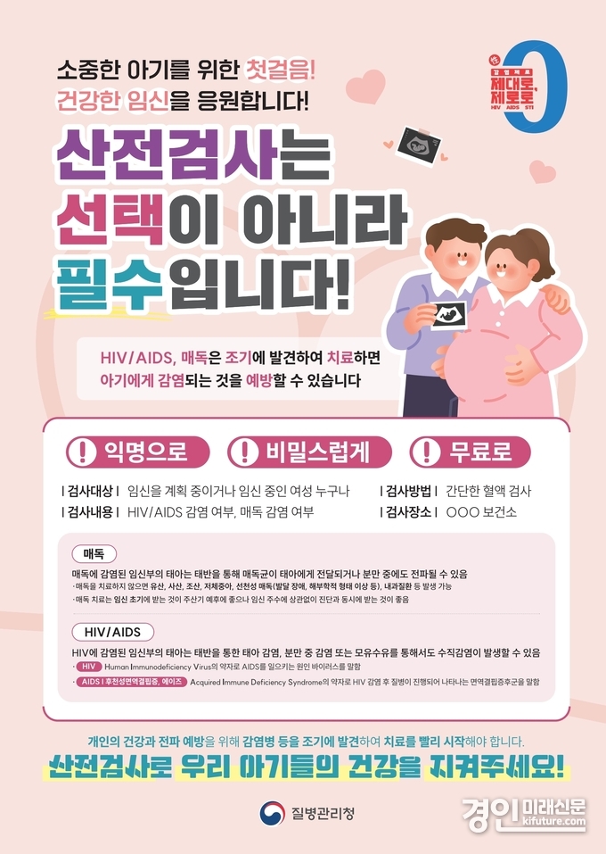 이미 임신 중인 여성을 위한 ‘임신 초기 산전 검사’는 B형간염(항원, 항체), 매독, 에이즈, 전혈구 검사 포함 4종을 연중 실시한다.