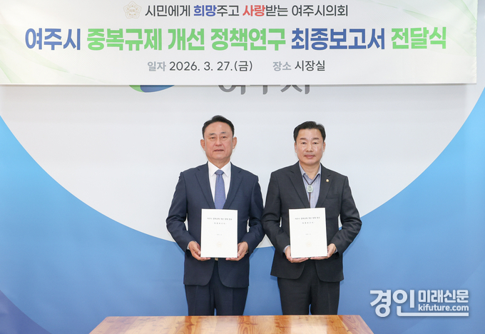 여주시의회는 27일 시장실에서 '여주시 중복규제 개선 정책연구' 최종보고서 전달식을 개최했다고 밝혔다.