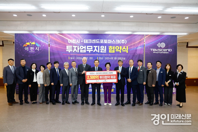 (경인미래신문=민경호 기자) 이천시(시장 김경희)가 지난 17일 반도체 핵심 공정 소재 기업인 테크센드포토마스크㈜와 2500억 원의 투자업무 지원협약을 체결하고 제3공장 증설이 원활히 추진될 수 있도록 적극적인 지원에 나선다.