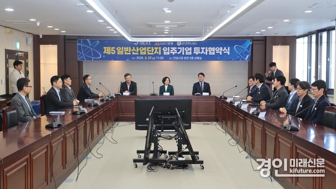 (경인미래신문=민경호 기자) 안성시는 지난 27일 시청에서 ㈜넥스트에어로스페이스와 ‘제5 일반산업단지 입주기업 투자유치 양해각서(MOU)’를 체결했다.