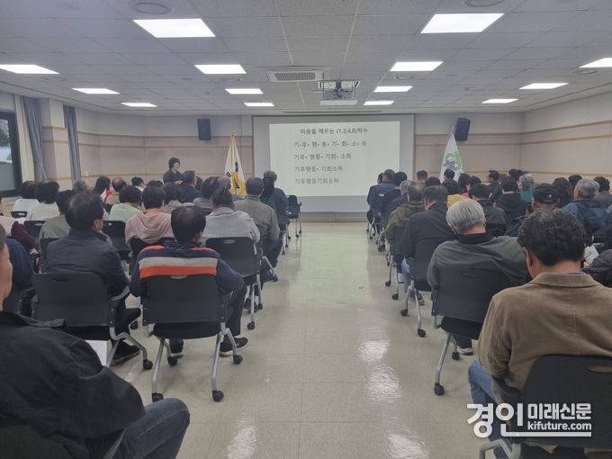 이번 교육은 강상면을 시작으로 100여 명의 주민이 참석한 가운데 진행됐으며 군은 기후 박수와 기후재난 이해를 돕는 교육과 함께 스마트폰을 활용한 포인트 적립 방법 등을 안내했다.