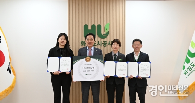 (경인미래신문=민경호 기자) 화성도시공사(사장 한병홍, 이하 HU공사)는 창의적이고 적극적인 업무 수행으로 조직 발전에 기여한 직원을 발굴·포상하기 위해 올해 신설한 'HU프런티어 어워즈'의 첫 수상자 3명을 선정하고 4월 7일 포상을 실시했다고 밝혔다.