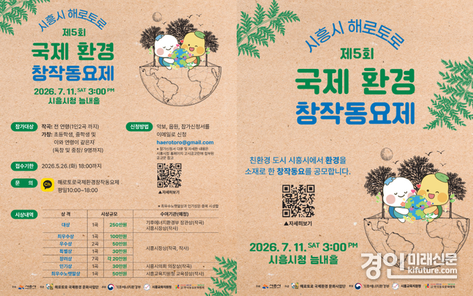 (경인미래신문=민경호 기자) 시흥시는 기후위기 시대를 맞아 동요로 환경의 가치를 전하고 친환경도시 시흥을 알리는 ‘제5회 시흥시 해로토로 국제 환경창작동요제’ 공모를 시작했다.