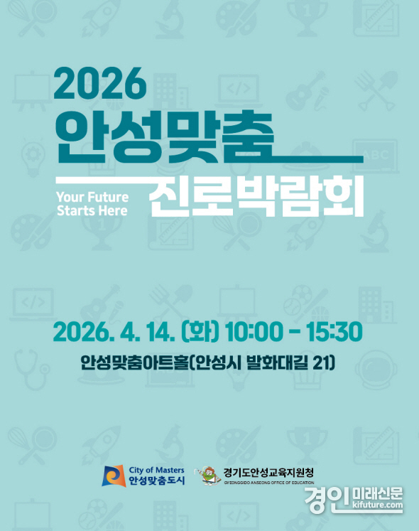 (경인미래신문=민경호 기자) 안성시는 오는 14일 안성맞춤아트홀에서 관내 청소년들의 자기주도적 미래 설계를 지원하기 위한 ‘2026 안성맞춤 진로박람회’를 개최한다고 밝혔다.