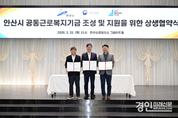 (경인미래신문=민경호 기자) 안산시(시장 이민근)는 지난 26일 안산상공회의소 그레이트홀에서 경기지방고용노동청 안산지청, 안산시 공동근로복지기금 1호 법인과 함께 ‘안산시 공동근로복지기금 조성 및 지원을 위한 상생협약’을 체결했다고 27일 밝혔다. 이번 협약은 지역 중소기업과 노동자가 함께 참여하는 공동근로복지기금 조성을 통해 대·중소기업 간 복지 격차를 완화하고 상생과 연대의 노동환경을 조성하기 위해 마련됐다. 앞서 시는 지난해 7월 ‘안산시 공동근로복지기금 지원 조례’를 제정하고 기초자치단체 최초로 공동근로복지기금 지원사업을 시행했다. 이는 지방정부와 중앙정부, 기금법인이 함께하는 3자 협력 모델을 구축했다는 점에서 의미가 있다. 이날 협약식에는 이민근 안산시장을 비롯해 양승철 경기지방고용노동청 안산지청장과 장현준 기금법인 대표, 참여기업 관계자 등 100여 명이 참석한 가운데 공동근로복지기금 사업 출범을 기념하고 상생 협력 의지를 다졌다. 협약에 따라 안산시는 공동근로복지기금 조성 및 운영을 위한 행정·재정적 지원을 담당하고 경기지방고용노동청 안산지청은 ▲정책 반영과 제도 개선 ▲참여기업 확대 및 우수사례 확산 ▲정부 지원 사업 연계 등을 지원한다. 기