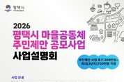 (경인미래신문=민경호 기자) 평택시(시장 정장선)는 주민들이 스스로 만들어가는 만남과 소통의 마을 공간에서 지속이 가능한 공동체 활동을 지원하고자 지난 27일부터 ‘2026년 평택시 마을공동체 주민제안 공모사업’을 추진한다고 밝혔다. 공모사업은 마을공동체를 처음 시작하는 씨앗기부터 2년 차인 성장기, 3년 차인 열매기로 진행되며 각각 200만 원, 400만 원, 700만 원 이내로 지원하며 마을공동체의 우수한 모델을 개발하고 전파하기 위한 기획 공모에는 최대 1000만 원까지 사업비를 지원한다. 주민제안 공모사업은 평택시에 거주하거나 생활권을 영유하는 자발적인 주민 모임으로 5인 이상으로 구성되어야 하며 주민들의 참여를 바탕으로 지역의 육아, 교육, 노인, 주거환경, 문화 등 다양한 영역에서 마을의 문제를 해결하고 발전하는 공동체 활동 프로그램을 지원하게 된다. 평택시는 작년에 23개의 다양한 공동체 활동을 지원했으며, 10월에는 다양한 공동체들이 시민들과 함께 축제를 진행했고 12월에는 성과공유회와 공동체 포럼으로 공동체의 발전 방향을 논의했다. 올해에는 최대 25개소의 공동체를 선발할 예정이다. 공모 기간은 오는 2월 26일까지, 서류 접수는 2월 19일