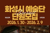 (경인미래신문=민경호 기자) (재)화성시문화관광재단(대표이사 안필연)은 2026년 ‘화성시 예술단’을 이끌어갈 예술감독과 사무단원을 모집한다. 화성시 예술단은 화성시문화관광재단이 운영하는 공공 예술단체로, 국악단과 오케스트라를 중심으로 기획공연과 화성시 주요 행사에서 활동하며 지역 문화예술 활성화에 기여하고 있다. 이번 1차 단원 모집에서는 ▲예술감독 2명(오케스트라·국악단 각 1명) ▲사무단원 3명(악보계·홍보·사업관리 각 1명)을 선발할 계획이다. 선발된 예술감독과 사무단원은 오는 2026년 3월 16일부터 약 8개월간 화성시 예술단의 예술 활동 및 운영 전반에 참여하게 된다. 채용 절차는 서류 심사와 면접 전형으로 진행되며 모집 분야별 지원 자격 및 제출 서류가 상이하므로 지원자는 채용 공고문을 반드시 확인해야 한다. 지원서 접수는 오는 30일부터 2월 9일 오후 6시까지이며 지정된 채용사이트를 통한 온라인 접수만 가능하다. 세부 자격요건, 제출 서류, 전형 일정 등 자세한 내용은 화성시문화관광재단 공식 홈페이지(hcf.or.kr) 채용 공고 게시판에서 확인할 수 있다 기타 자세한 사항은 화성시문화관광재단 문화사업팀으로 문의 가능하다.