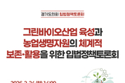 (경인미래신문=민경호 기자) 경기도의회는 오는 24일 오후 2시 연천군 종합복지관 3층 소강당에서 '그린바이오산업 육성과 농업생명자원의 체계적 보존·활용을 위한 입법정책토론회'를 개최한다. 이번 토론회는 경기도의회 농정해양위원회 윤종영 부위원장이 좌장을 맡아 발제 및 토론을 진행하고, 제도적 개선 방향에 대한 의견을 종합·정리할 예정이다. 행사는 연천군이 경기도 그린바이오산업 북부 육성지구로 지정된 이후, 농업생명자원의 보존·관리 체계와 산업적 활용 방안을 종합적으로 검토하기 위해 마련됐다. 이날 발제는 최춘환 경기도경제과학진흥원 바이오연구개발팀 책임연구원과 최익영 강원대학교 스마트팜농산업학과 교수가 맡아 농업생명자원의 산업화 가능성과 정책적 지원 방향을 제시한다. 이어지는 토론에는 그린바이오산업 기업체 대표, 엄기만 경기도 바이오산업과장, 황인순 경기도 친환경농업과장, 정윤경 경기도농업기술원 선인장다육식물연구소장, 이현주 연천군 경제교통과장이 참여해 다각적인 정책 과제를 논의할 예정이다. 한편 이번 토론회에서 제시된 의견은 농업생명자원 관련 제도 개선 및 조례 입법 방향 검토에 반영될 예정이다.