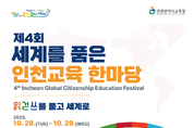 (경인미래신문=민경호 기자) 인천광역시교육청(교육감 도성훈)은 오는 28일부터 29일까지 송도 컨벤시아에서 ‘제4회 세계를 품은 인천교육 한마당’을 개최한다. 이번 축제는 2022년 시작 이후 매년 이어져 올해로 4회를 맞았으며 인천 학생·학부모·교직원·시민이 함께하는 전국 유일의 세계시민교육 축제로 자리매김했다. 올해는 ‘읽걷쓰를 품고 세계로’를 슬로건으로 80여 개 전시·체험 부스, 공연, 발표 프로그램이 운영된다. 개막식은 28일 오후 2시 발달장애인 앙상블 ‘국민엔젤스’와 인천학생교육문화회관 뮤지컬단 ‘가온누리’ 공연으로 시작하며 OECD 안드레아스 슐라이허 교육국장이 기조연설을 맡는다. 행사장은 ‘인천 속 세계’와 ‘세계 속 인천’ 두 구역으로 나뉘어 글로벌 자원과 세계시민교육 활동을 체험할 수 있다. 특히 2015년 세계교육포럼 ‘인천선언’ 10주년 특별전시존이 마련되고 세계시민광장에서는 네 컷 사진, 코스프레, SDGs 굿즈 제작 등 참여형 프로그램을 진행한다. 또한 외국 대사관 문화공연, 학생 K-팝 무대, 현대자동차 특별 전시가 더해져 교육·산업·기술을 아우르는 다채로운 볼거리를 제공한다. 29일에는 ‘인천 국제교육·평화교육 포럼’과 ‘인천세