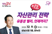(경인미래신문=민경호 기자) 성남시(시장 신상진)는 오는 12월 9일 오후 3시 30분부터 5시 30분까지 시청 1층 온누리에서 ‘자산관리 전략’을 주제로 한 올해 희망성남 토크콘서트 마지막 강연을 연다. 앞선 11월 19일 ‘부동산 전망과 내 집 마련 전략(고종완 한국자산관리연구원장)’에 이은 경제 특강 2탄이다. 이날(12.9) 초빙 강사는 김광석 한국경제산업연구원 경제연구실장이다. 강연자는 ‘유동성 랠리’와 빠르게 변화하는 경제 환경 속에서 국내외 주요 경제 현안에 대해 알기 쉽게 설명한다. 이와 함께 유동성 장세의 지속 여부, 실질적인 투자 운용 방향, 향후 경제전망, 자산관리 전략에 관한 강연을 한다. 김광석 실장은 ‘경제 읽어주는 남자’ 저자로 알려진 경제전문가다. 현재 한양대학교 겸임교수로도 재직 중이며 에너지경제연구원 전문연구원, 현대경제연구원 선임연구원, 삼정KPMG 경제연구원 수석연구원 등으로 활동했다. 강연은 무료로 진행되며 성남시 평생학습 통합 플랫폼 ‘배움 숲’ 홈페이지를 통해 선착순 600명까지 신청할 수 있다.