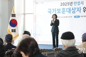 (경인미래신문=민경호 기자) 안성시(시장 김보라)는 지난 24일 라오웨딩홀에서 '2025년 국가보훈대상자 위로연'을 개최했다고 밝혔다. 이날 행사는 김보라 안성시장이 관내 보훈대상자 500여 명을 모시고 위로하는 자리로 식전공연으로는 가수 양재기가 품바공연으로 보훈어르신들의 향수를 불러일으켜 흥을 돋우고 관내 어린이집 원아들이 보훈대상자에게 감사의 마음을 나누는 특별공연이 이어져 세대가 함께 감사의 마음을 나눌 수 있는 시간을 가졌다. 특히 이번 위로연 행사에서는 다양한 체험부스를 운영하였는데 안성시 보건소 금연크리닉, 안성시 정신건강복지센터 어르신 자살예방프로그램, 안성시 청춘놀이터 운동교실, 안성시치매예방 함께해孝(효), 안성성모병원 등 어르신이 평소 관심 많은 사업이나 프로그램 홍보부스를 운영해 어르신의 겨울철 건강관리 유의사항 등을 안내했다. 또한 어르신의 신체활동을 돕고 재미를 더하기 위해 룰렛다트, 탁구공 농구 등으로 신체활동 체험부스도 운영했는에 행사에 참석한 보훈단체 한 회원은 “품바공연도 재미있었고 평소 치매 프로그램 가입 방법을 몰라 참여하지 못했는데 위로연 행사에 참석해 가입하게 되어 좋은 기회를 만들어준 안성시가 일을 잘하고 있다고 느꼈